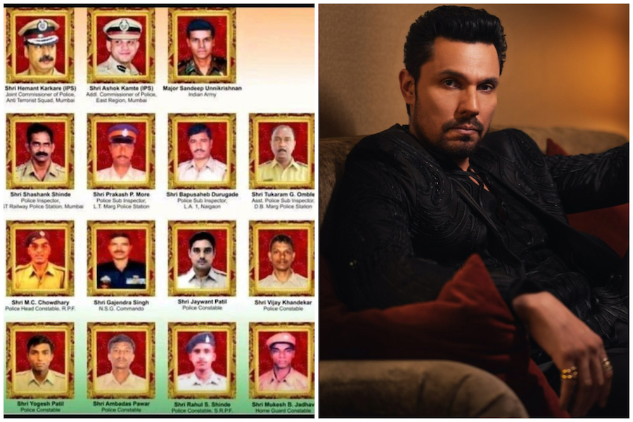 रणदीप द्वारा साझा किए गए पोस्टर में 20 शहीद अधिकारियों को सम्मानित किया गया है। इनमें एटीएस प्रमुख हेमंत करकरे, एनएसजी कमांडो मेजरसंदीप उन्नीकृष्णन, अतिरिक्त पुलिस आयुक्त अशोक कामटे, और वरिष्ठ पुलिस निरीक्षक विजय सालस्कर जैसे वीर अधिकारी शामिल हैं। इन सभी नेआतंकवादियों का सामना करते हुए सर्वोच्च बलिदान दिया।
