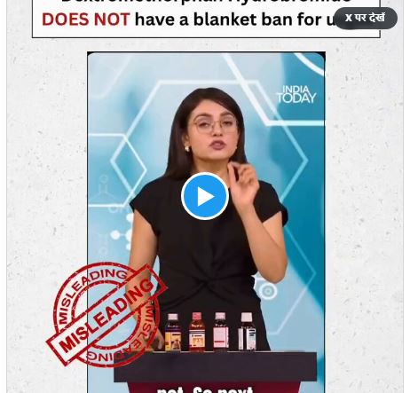 फैक्ट चेक में यह स्पष्ट किया गया कि 'डेक्सट्रोमेथॉर्फन हाइड्रोब्रोमाइड' घटक के उपयोग पर पूर्ण प्रतिबंध (Total Ban) नहीं है।