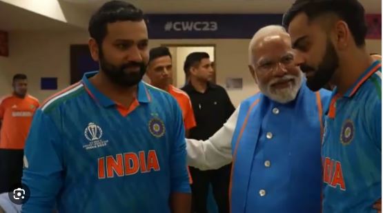 आईसीसी वनडे वर्ल्ड कप 2023 के फाइनल में टीम इंडिया को ऑस्ट्रेलिया के हाथों करारी हार का सामना करना पड़ा. भारत और ऑस्ट्रेलिया के बीच फाइनल मुकाबले में कंगारुओं ने भारत को 6 विकेट से हरा दिया. इस हार के बाद टीम इंडिया के सभी खिलाड़ी काफी निराश हुए, यहां तक ​​कि रोहित और सिराज भी मैदान पर रोने लगे. इसके बाद देश के प्रधानमंत्री नरेंद्र मोदी ने ड्रेसिंग रूम का दौरा किया. उन्होंने विराट कोहली और रोहित शर्मा समेत पूरी टीम का हौसला बढ़ाया है, जिसका वीडियो सोशल मीडिया पर वायरल हो रहा है.