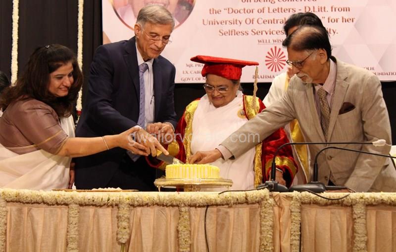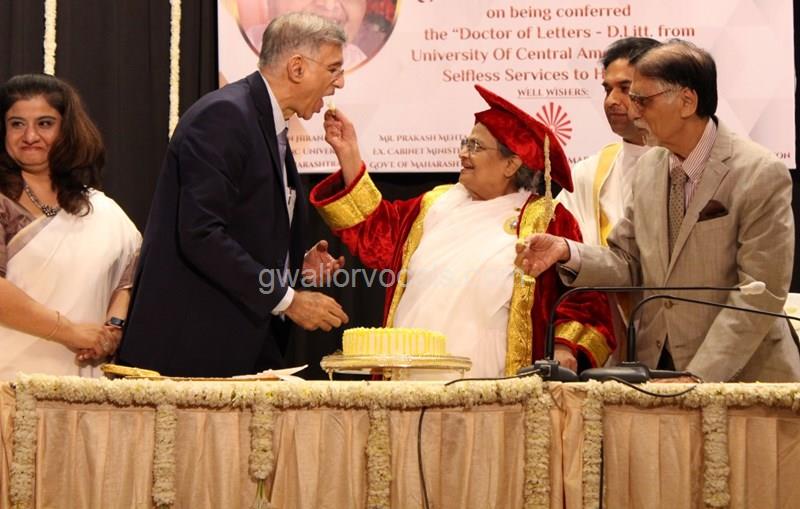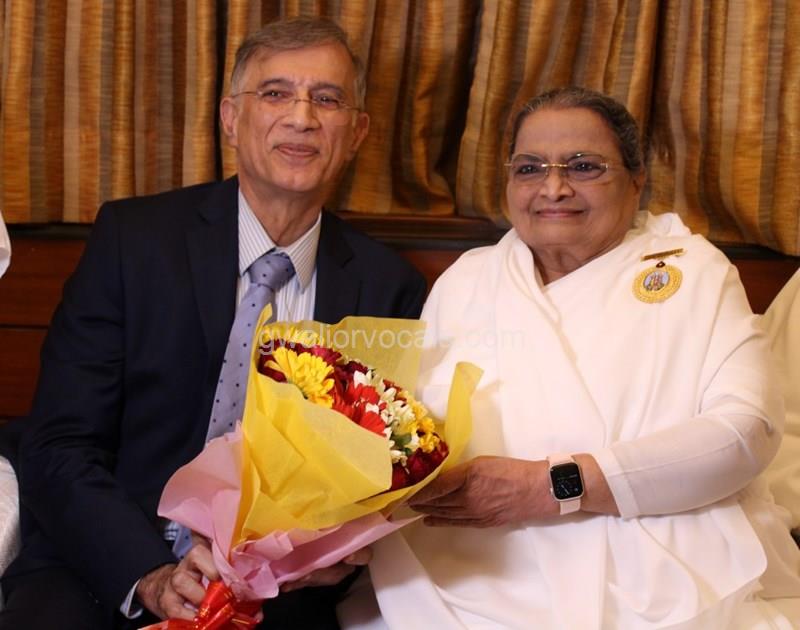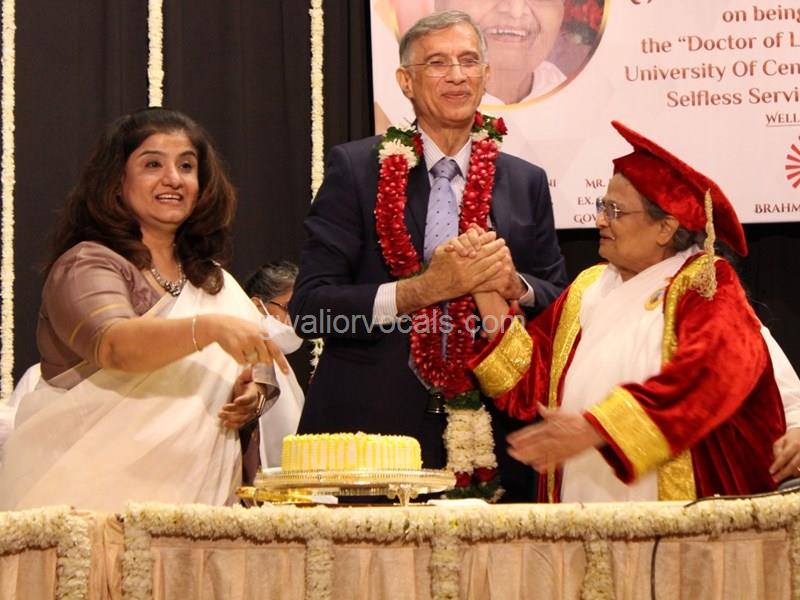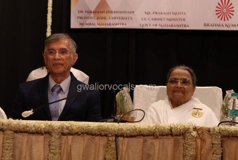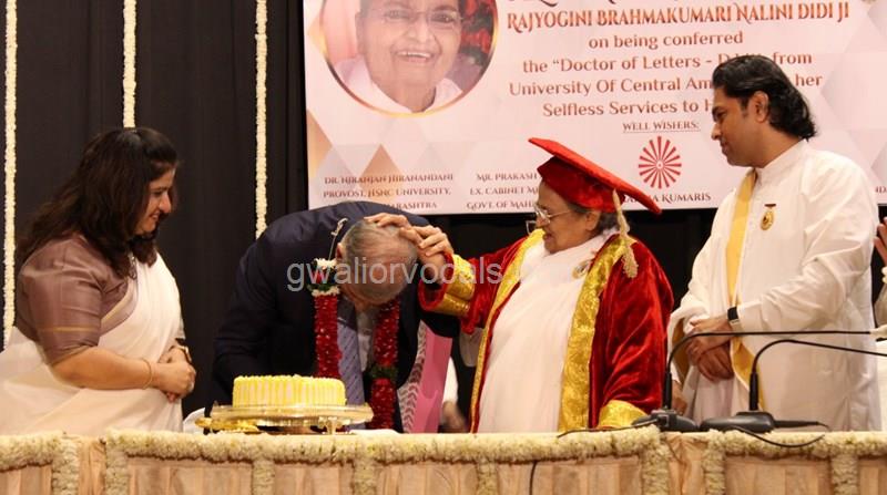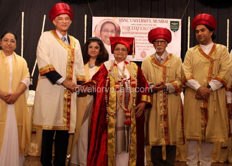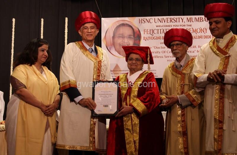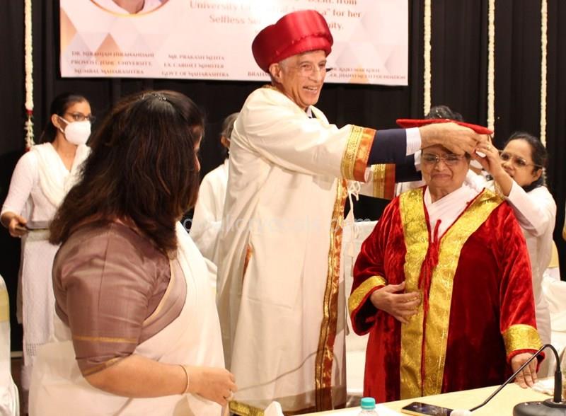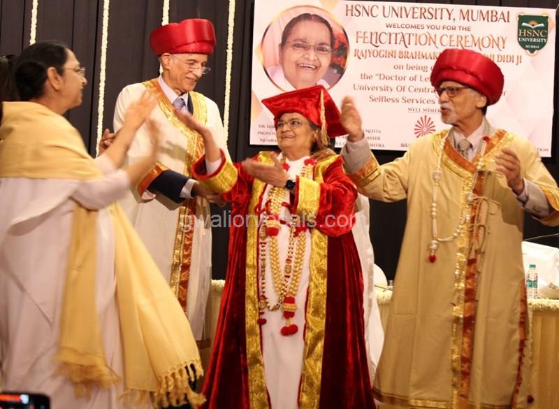 Dr. Niranjan Hiranandani Provost, HSNC University felicitates Rajyogini BrahmaKumari Nalini Didi ji on being conferred Doctorate Degree