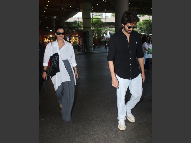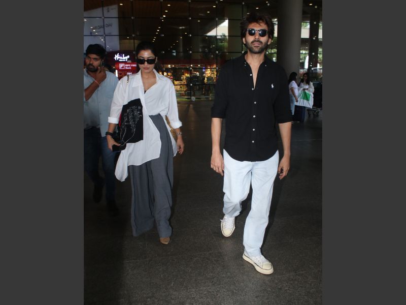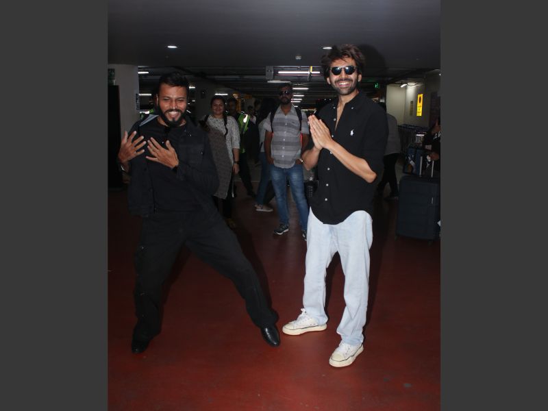 Kartik Aaryan And Rashmika Mandanna Spotted At Mumbai Airport