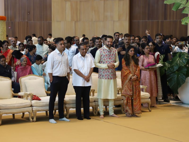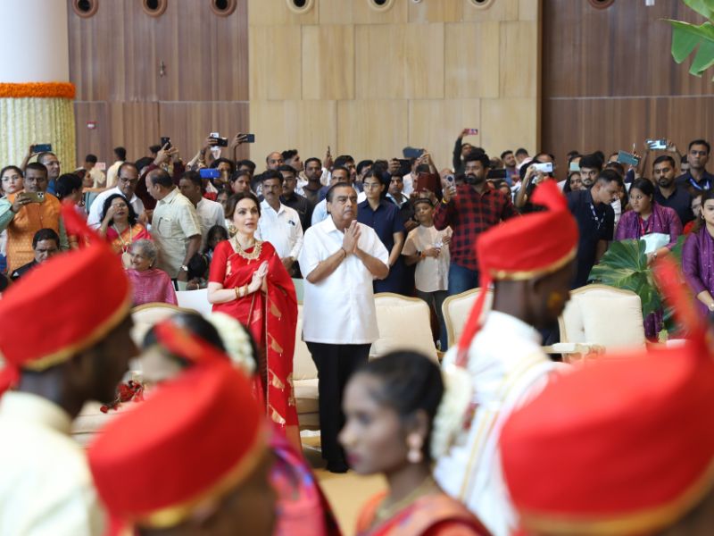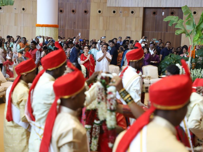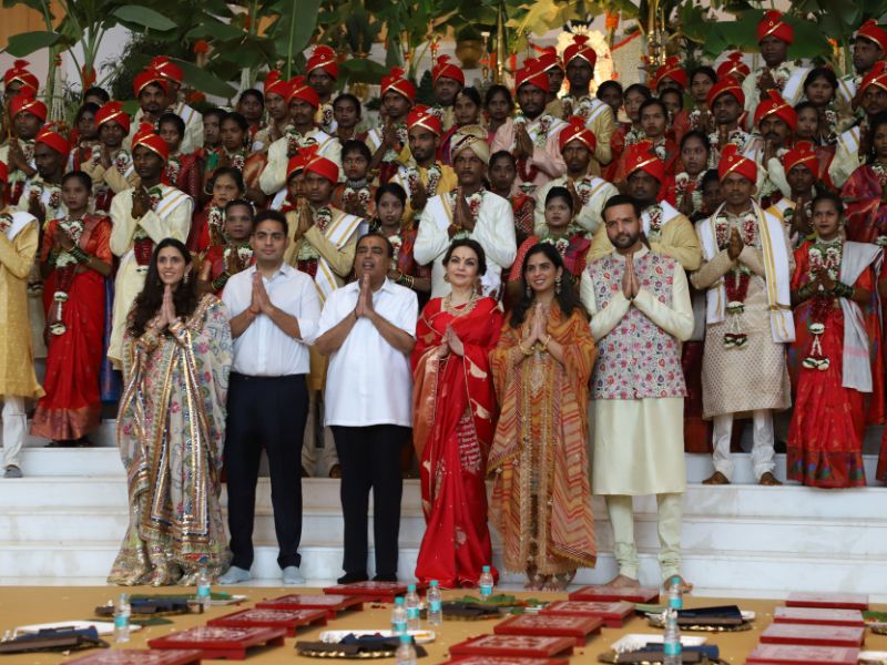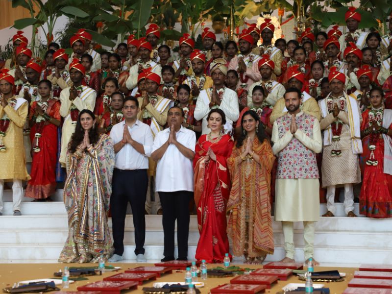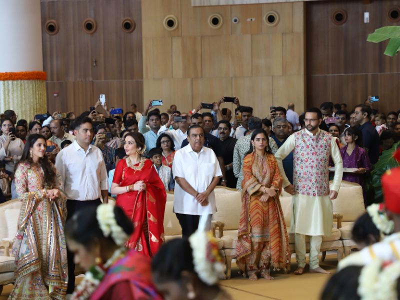 #AkashAmbani with wife #ShlokaAmbani and #IshaAmbani with husband #AnandPiramal arrive together to attend the mass wedding of the underprivileged, organized by the #Ambani family as part of #AnantbhaiAmbani and #RadhikaMerchant’s pre-wedding celebrations 💕✨💫