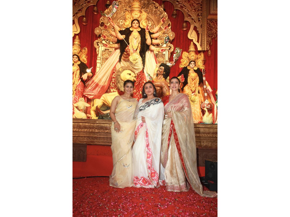 Rani Mukerji, Kajol, Tanishaa Mukerji, Ayan Mukerji and others snapped during Durga Puja at North Bombay Sarbojanin