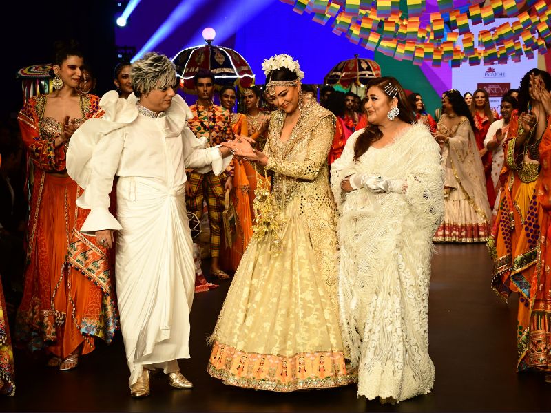 The Taali actress celebrated inclusivity in her latest appearance on the ramp for the Bombay Times Fashion Week. Sushmita Sen donned a heavy yet stunning, traditional outfit designed by Rohit Verma, walking the ramp with her Taali co-stars to celebrate inclusivity and the LGBTQ community.